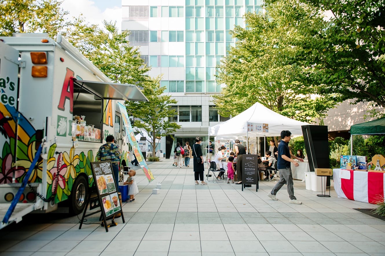 織田恵比寿ビジネスタワー会場では、テナント企業様によるワークショップやキッチンカーなどのコンテンツを実施しました。準備段階では、当日どれくらいの方が足を運んでくださるか未知数の部分が多かったのですが、ふたを開けてみれば近隣にお住まいのファミリー層を中心にたくさんの方にお越しいただけて。テナント企業様からは、日頃は接点があまりない地域住民の方々とも交流を深められて良かったという声が多くありました。