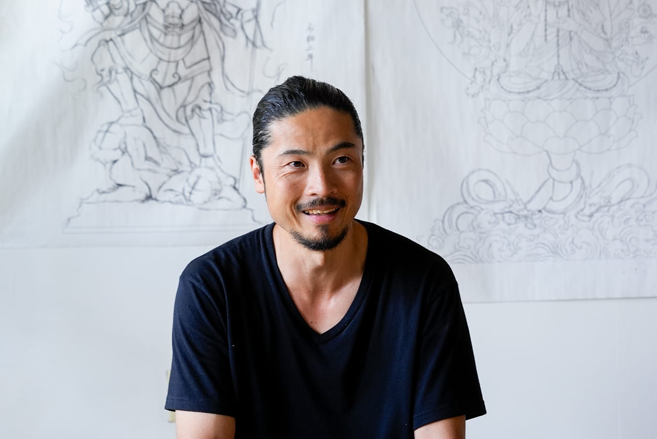25歳で仏師という仕事に出会い、人生の歯車が回り出したという宮本我休(がきゅう)さん。京都に工房を構え、京都・下鴨神社の獅子狛像づくりや知多半島の古寺、野間大坊(のまだいぼう)の毘沙門天像修復など、仏像の新彫や修復を多数手がけられています。前編では、仏像づくりの世界へ飛び込んだきっかけや、寝食を忘れるほど励んだ修行から独立までの日々についてお話を聞きしました。