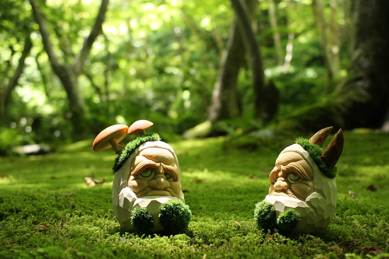 独立したものの仕事はいっさいありませんでした。父親からもらった達磨大師(だるまたいし)の掛け軸を飾り、日がな一日ぼおっと見る、そんな日々でした。あるとき自分から動かないとダメだと思い、ひらめいたのがダルマさんを自分なりにアレンジしてみようという試みです。誰もが知っているダルマさんの頭の上に、植物や生き物などいろんなモチーフを乗せたものです。知り合いを通じて大手百貨店の展示会に参加させていただくことができましたが、僕以外は人気作家の方ばかり。時間をもてあました僕はひたすら店頭に立ち「ダルマさんとは」 「仏教とは」をしゃべり続けました。それを見た百貨店の方が「あいつ誰や」と面白がってくださり、別の展示機会をいただくなど仕事が少しずつ広がっていきました。