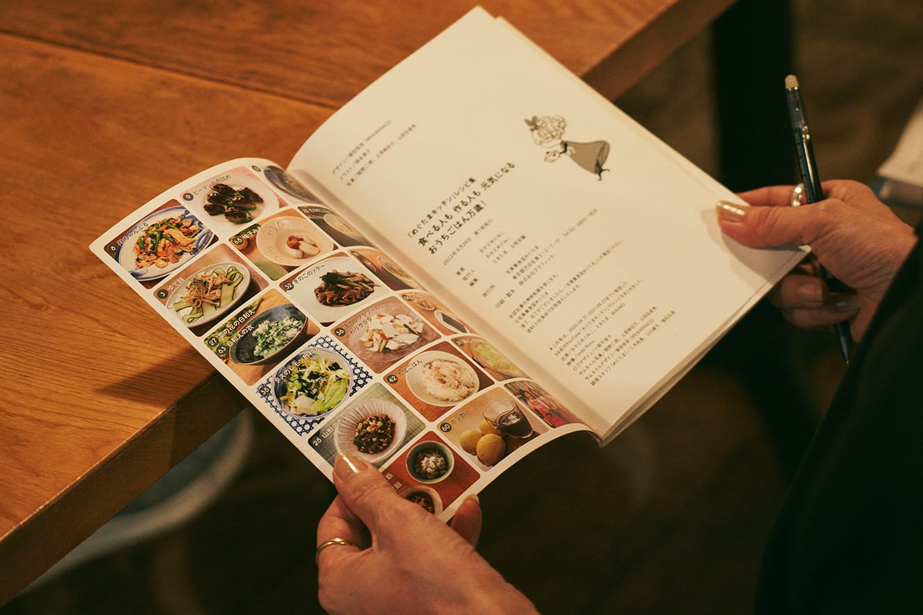ときたまおかどさんが培ってきたノウハウをいろんな人に知ってもらいたくて、料理YouTube「めぐたまキッチン」も80回配信。それをまとめた本『めぐたまキッチンレシピ集/食べる人も 作る人も元気になる おうちごはん万歳!』(写真集食堂めぐたま 550円)も自費出版しました。65のレシピが紹介されています。