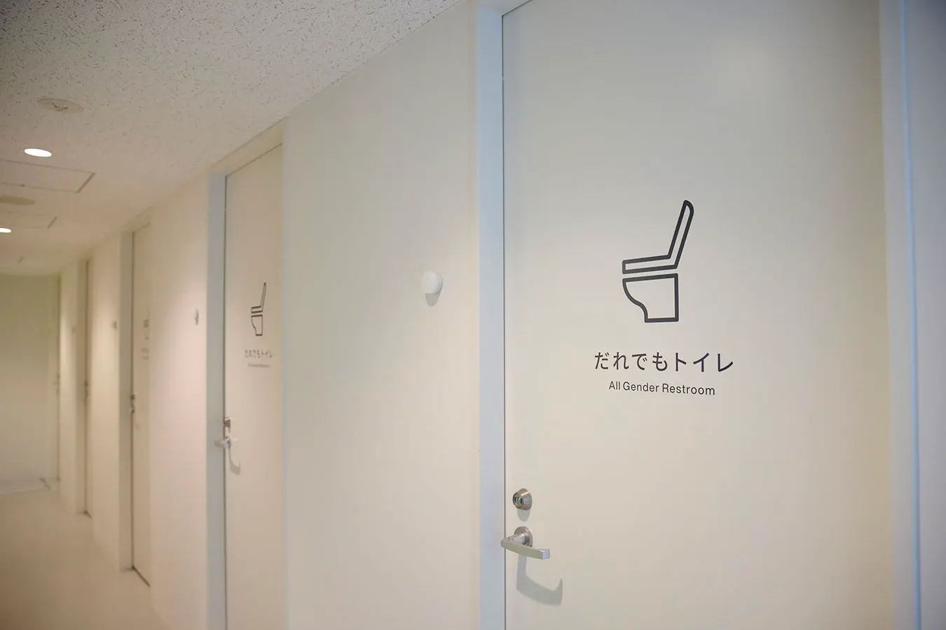 個室ブースが並び、性別にかかわらず利用できる