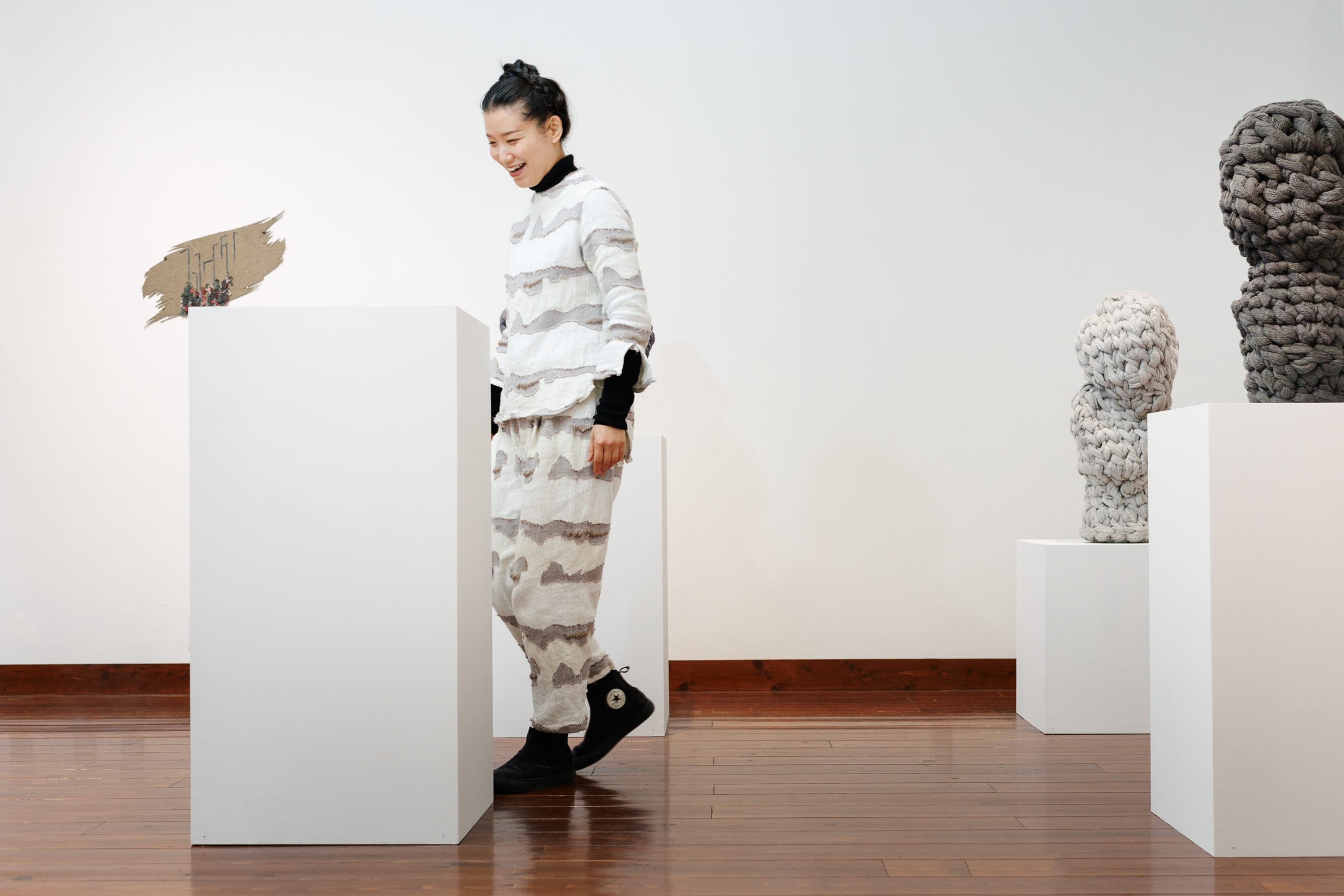 ライフスタイルや社会状況に沿って生みだす作品は変わってきましたが、編み物をしていると、どんどんといろんな方向が気になってくるんです。今はミクロとマクロの世界を行き来していて、それはどこか世界を俯瞰しているような視点でもあって、すでに在る場所や他者というよりも、新たに自分でつくることや自分の内側に関心が向かっています。