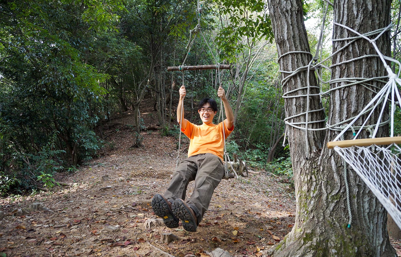 数十年も手つかずの山林は、藪が生い茂り、人が入るのも難しい状況でした。それを1日に数十メートルずつ切り拓いて道を作り、広場を作る。全身泥まみれ、汗まみれ、虫にもさされながら、約2年間、一人で黙々と進めていきました。大自然と向き合いながら自分の思い描いていたものが少しずつカタチになってくると、なんとも言えない喜びを感じました。