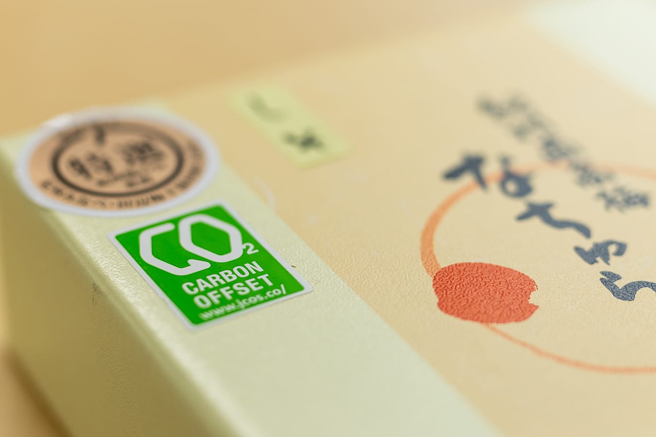 こうした商品開発と並行して注力してきたのが、地球環境になるべく負荷をかけないものづくりの追求です。2009年4月に環境省のカーボン・オフセット認証制度がスタートし、その年の8月に食品業界で最初(日本全体では3番目)に認証を取得しました。内容を簡単にご説明すると、ギフト品を中心とする当社の一部商品について、原料の梅の栽培から、商品加工、流通に至るすべての工程で生じるCO2排出量を算出。それを上回るカーボンクレジットを購入することで、温室効果ガスの削減活動に投資してオフセット(相殺)しています。