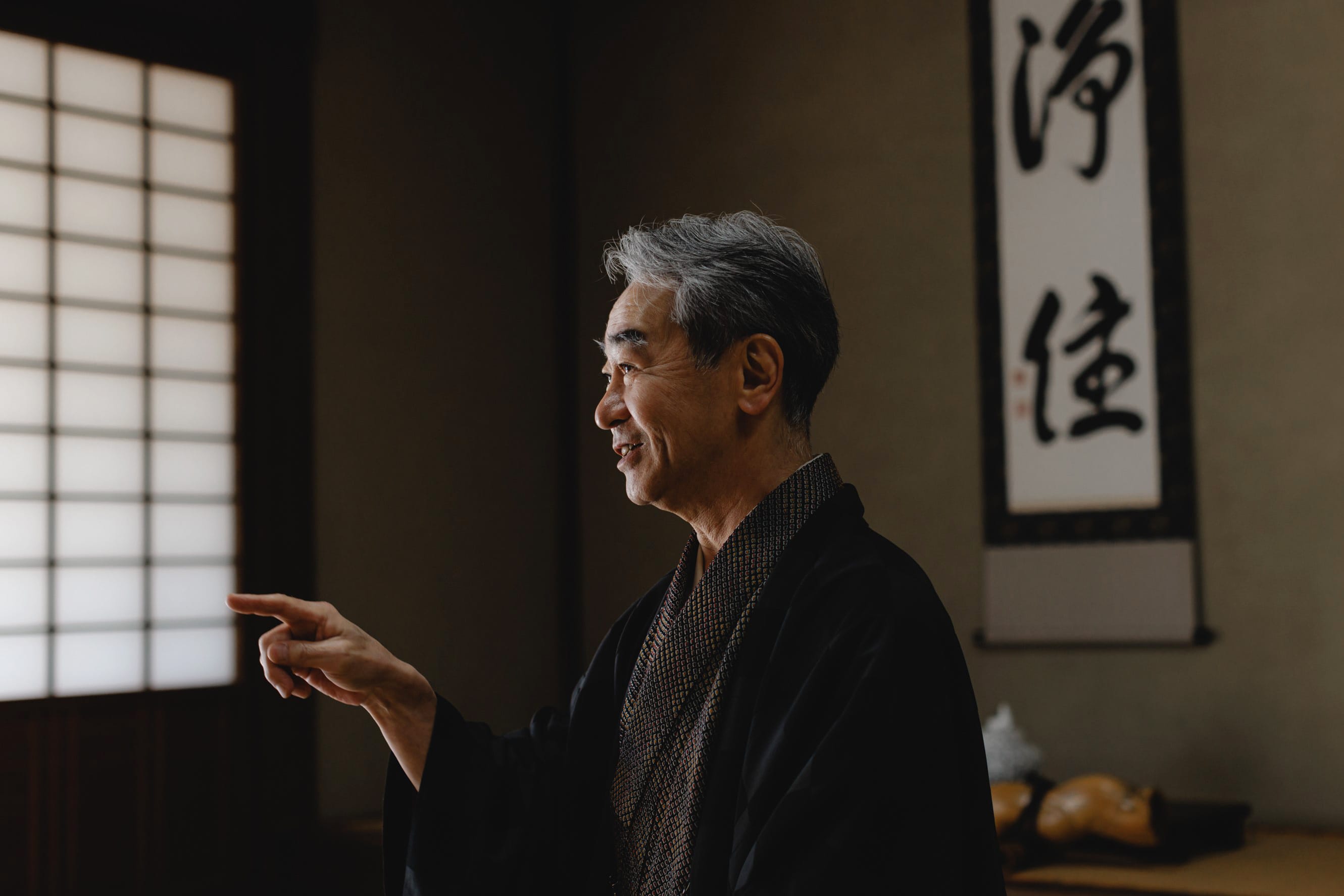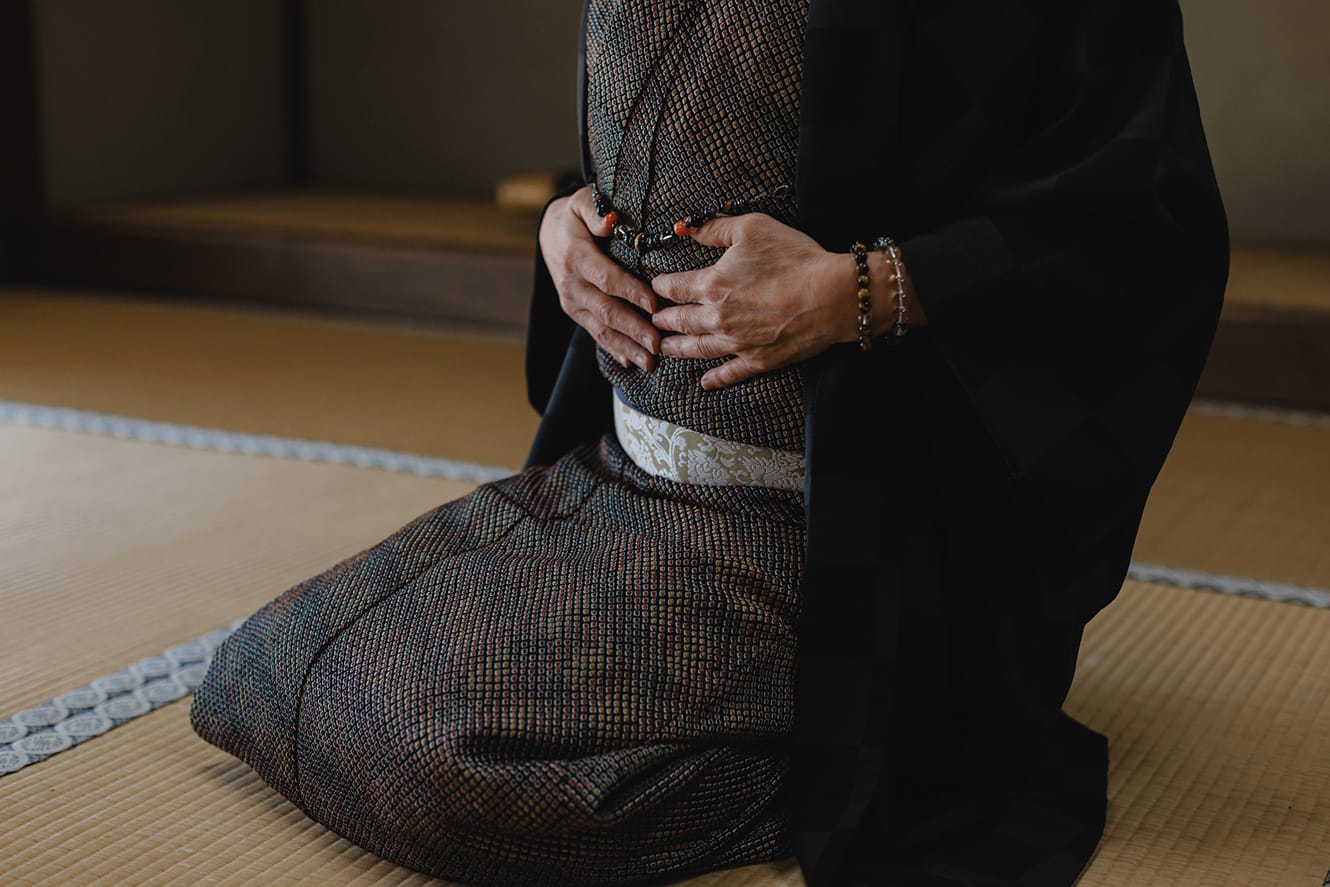 取り組みのスタートは、日本の文化を一つずつ知っていこうと、人生初の着物に挑戦しました。大阪の船場センタービルにある古着屋さんに出かけて、背丈の合う一番安い着物と羽織、帯を手に入れました。帰宅すると家人からは「どうしたの。お願いだから着物のまま外に出ないでね」と(笑)。以来ずっと着物で過ごしていますが、下腹を帯でぎゅっと締めると背筋がきゅんと伸びて気持ちがいい。日本人の自覚が芽生えたというか、それまで正座をすることもなかったので、着物を通じて所作が変わりました。